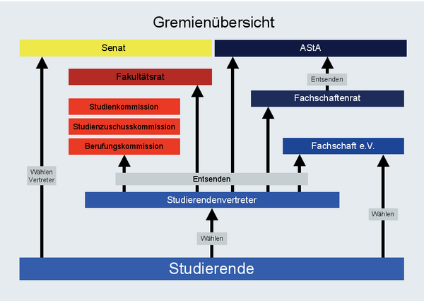 Im Folgenden findet ihr einen Überblick und Erläuterungen über die Gremien, in welchen wir die Hochschulpolitik aktiv mitgestalten: